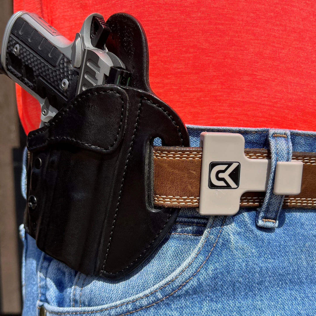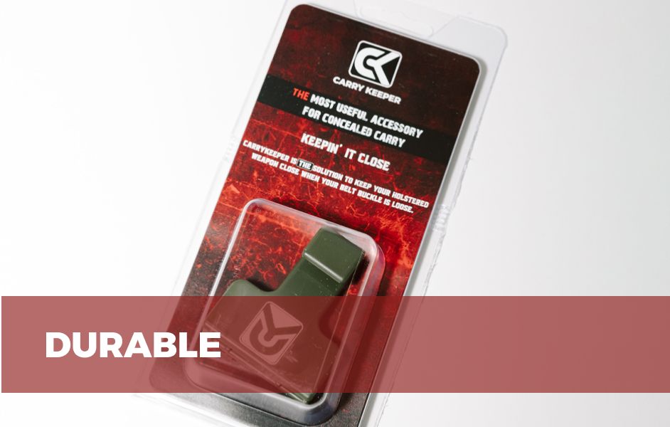 CarryKeeper prevents your weapon from swinging away from your body by securely holding your belt in place when unbuckled. Get CarryKeeper and keep your weapon close!